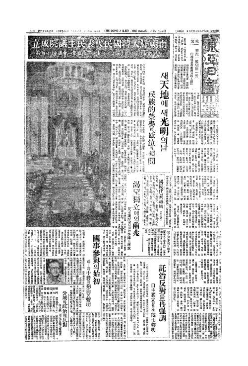 [社說(사설)] 表裡一體(표리일체)의統一體(통일체) 國議(국의)의最高委員(최고위원)과民主議院(민주의원)