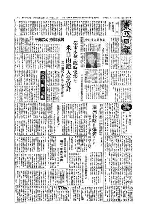 - 都市本位(도시본위)의臨時便法(임시변법)으로 米自由搬入(미자유반입)을容許(용허)