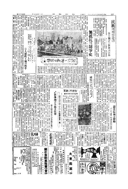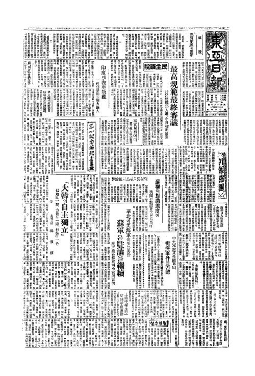 - 『大韓(대한)의自主獨立(자주독입)』信地(신지)도一點(일점)、方途(방도)도一路(일로)、行裝(행장)도一色(일색) ① 本社主幹(본사주간) 薛義植(설의식)
