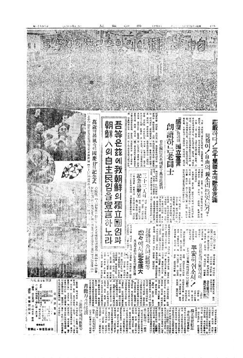 獨立宣言記念(독입선언기념) 本社(본사)에서嚴肅擧行(엄숙거행)