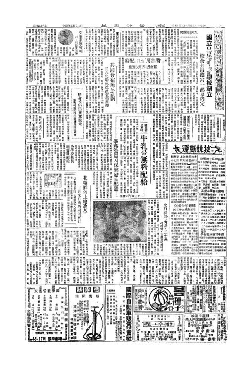 - 國民校兒童(국민교아동)에 牛乳(우유)를無料配給(무요배급)