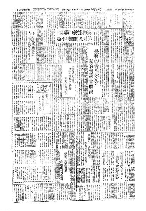 - 媾和條約(구화조약)에調印(조인)은 結局九個國(결국구개국)에不過(부과)