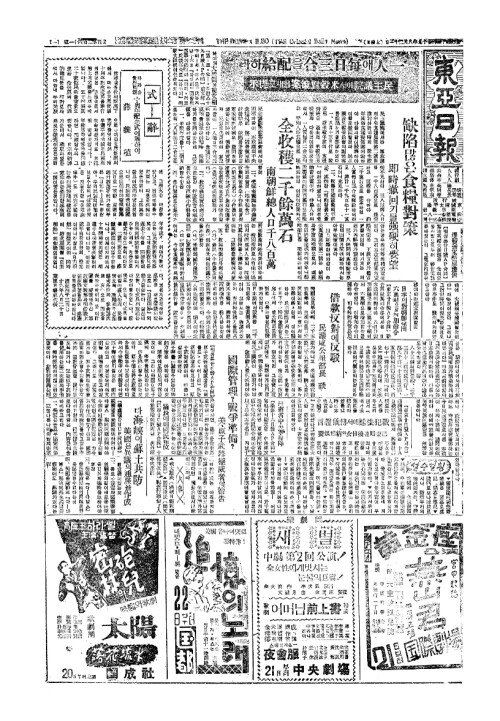 - 一人(일인)에每日三合(매일삼합)을配給(배급)하라 民主議院(민주의원)에서米糓對策案(미곡대책안)을새로提示(제시)