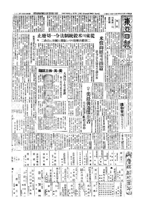 - 從來(종내)의米糓統制法令一切廢止(미곡통제법영일절폐지)