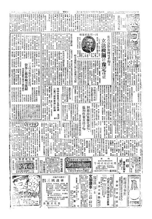 - 左右合作如何(좌우합작여하)에不拘(부구)코 立法機關(립법기관)은豫定(예정)대로 러-추長官言明(장관언명)
