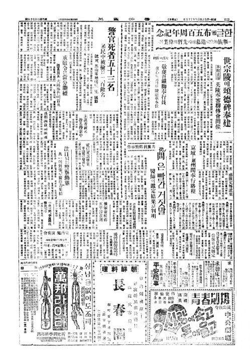 - 한글頒布五百(반포오백)?年記念(년기념)=擧族的(거족적)으로 追慕(추모)하자先哲(선철)의 偉業(위업)을=