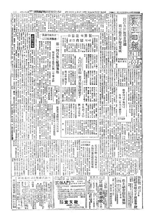 - 立法地方議員(립법지방의원) 選擧遲延(선거지연)으로 第一回召集(제일회소집)도延期豫想(연기예상)