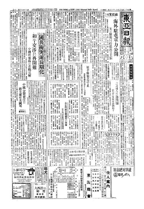 - 在日同胞日籍適用(재일동포일적적용)은誤報(오보) 廿日(입일)맥司令部(사령부)에서特別釋明(특별석명)