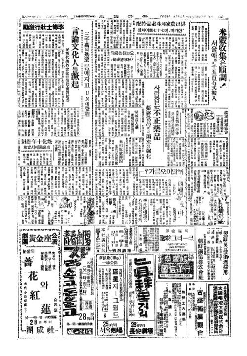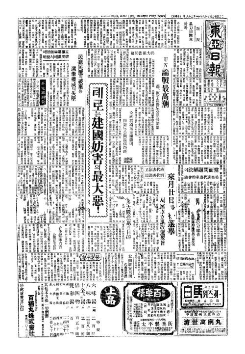 - 三千萬(삼천만)의?望 등에자고 UN에登程(등정) 言論文化人(언론문화인)들蹶起(궐기) 民族代表外交使節後援會(민족대표외교사절후원회)를結成(결성)