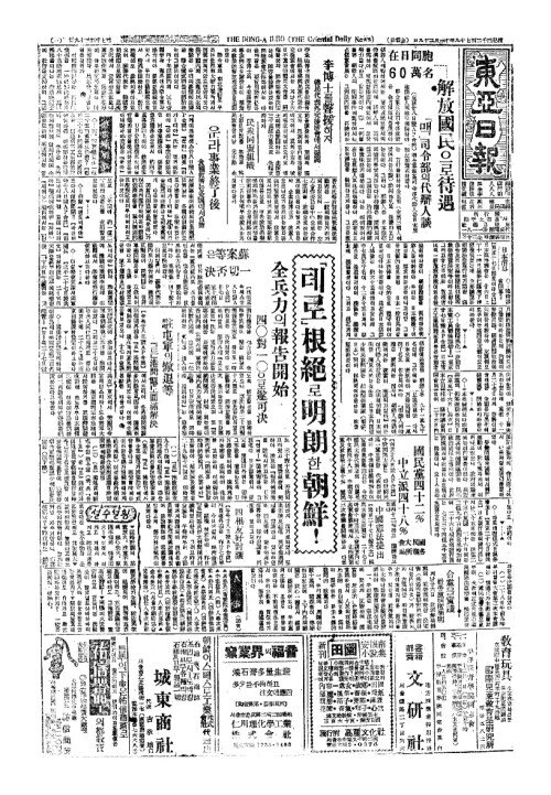 - 解放國民(해방국민)으로待遇(대우)「맥」司令部(사영부)의代辯人談(대변인담)