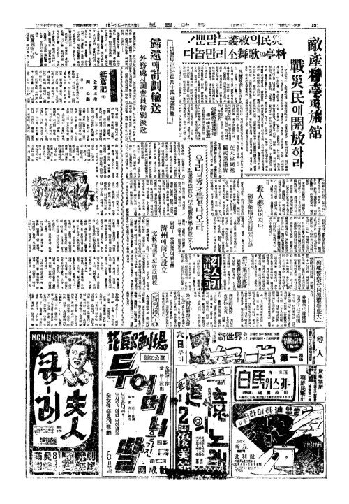 - 敵產料亭(적산료정)과旅舘(려관) 戰災民(전재민)에開放(개방)하라
