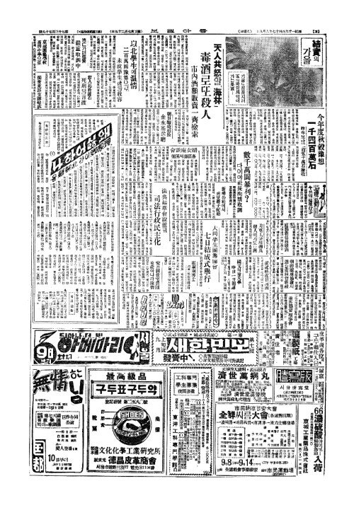 - 今年度秋糓豫想(금년도추곡예상) 一千四百萬石(일천사백만석) 昨年(작년)보다二百五十萬石增收(이백오십만석증수)