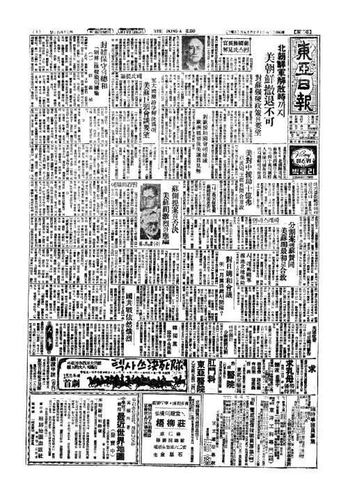 - 五大國際紛爭解決爲(오대국제분쟁해결위)해 美蘇巨頭會談要望(미소거두회담요望)