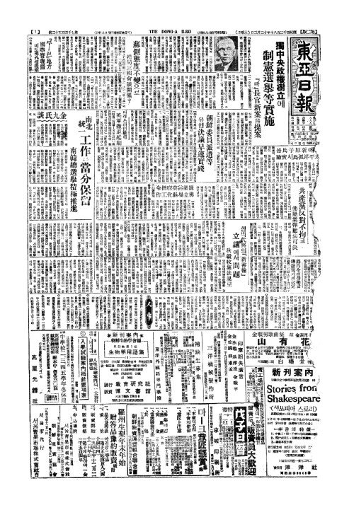 - 金九氏談(김구씨담) 南北統一(남배통일) 工作(공작)은當分保留(당분보류)