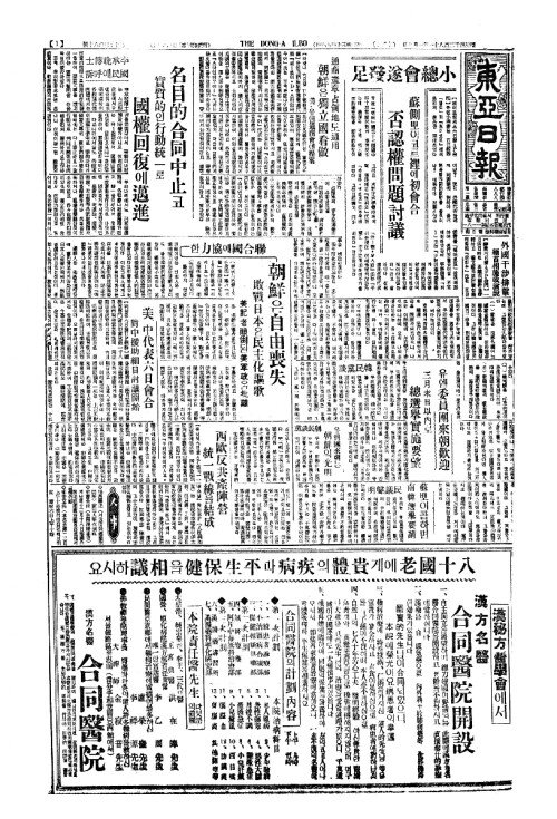 - 通商憲章占領地(통상헌장점영지)도適用(적용) 朝鮮(조선)은獨立國看做(독입국간주) 美(미)·유엔通商會(통상회)에提案(제안)