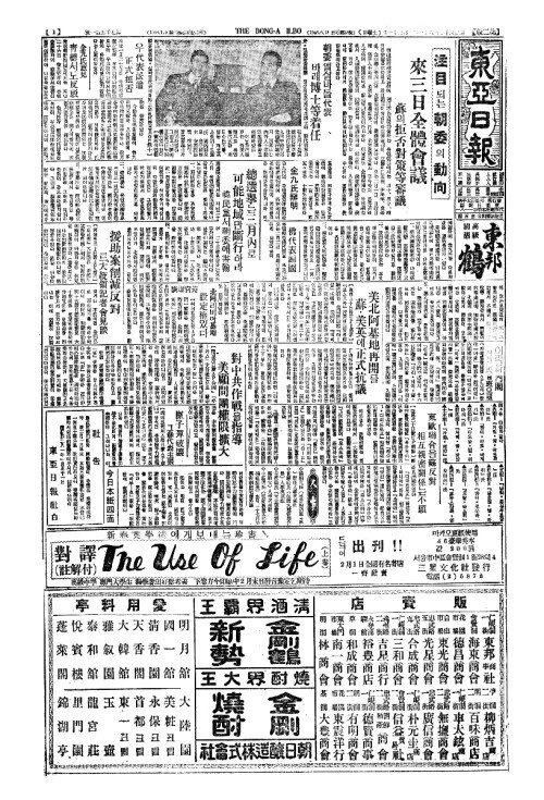 - 援助案削減反對(원조안삭감반대) 트大統領記者會見談(대통영기자회현담)