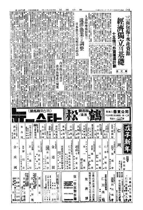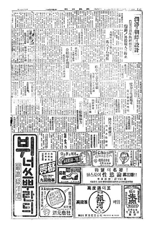 - 今日本紙四面(금일본지사면)