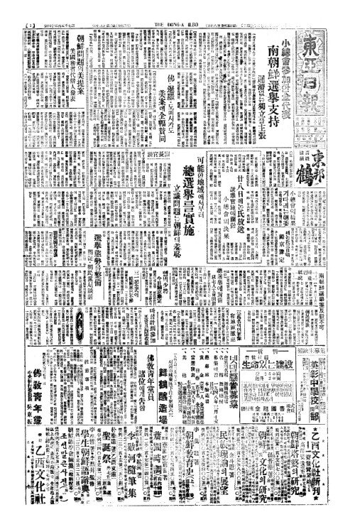 - 廿八日(입팔일)메논氏放送(씨방송) 選擧實施(선거실시)에關(관)한