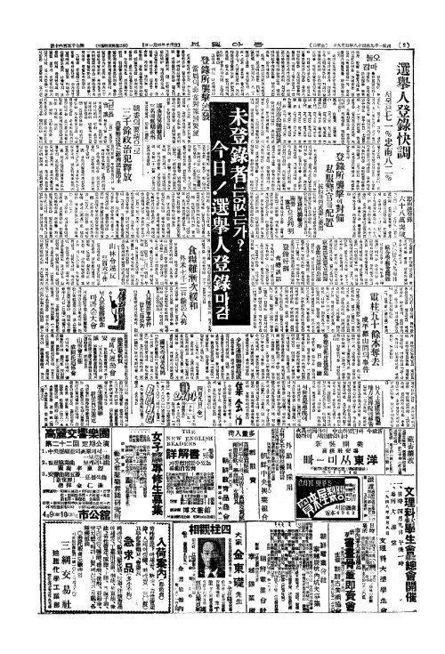 - 選擧人登錄快調(선거인등록쾌조) 서울은七一(칠일)%忠南八二(충남팔이)%