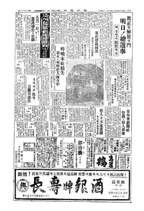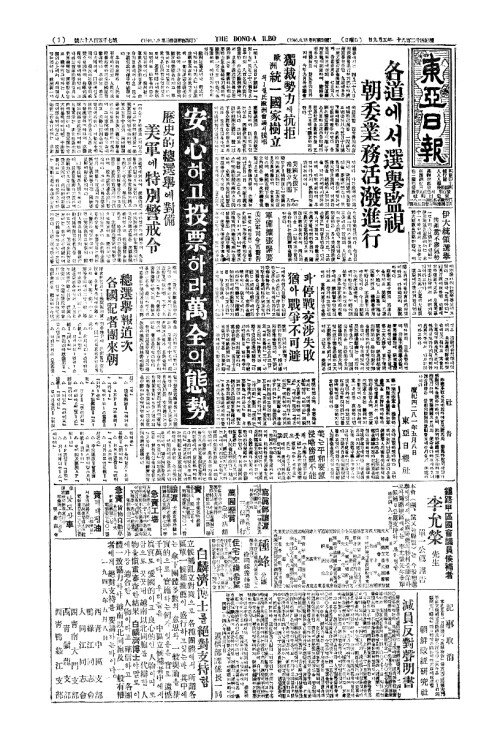 - 歷史的總選擧(역사적총선거)에對備(대비) 美軍(미군)에特別警戒令(특별경계령)
