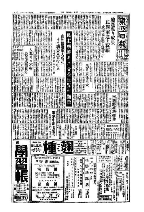 - 總選擧(총선거)의成果(성과) 民族前途(민족전도)를祝福(축복)