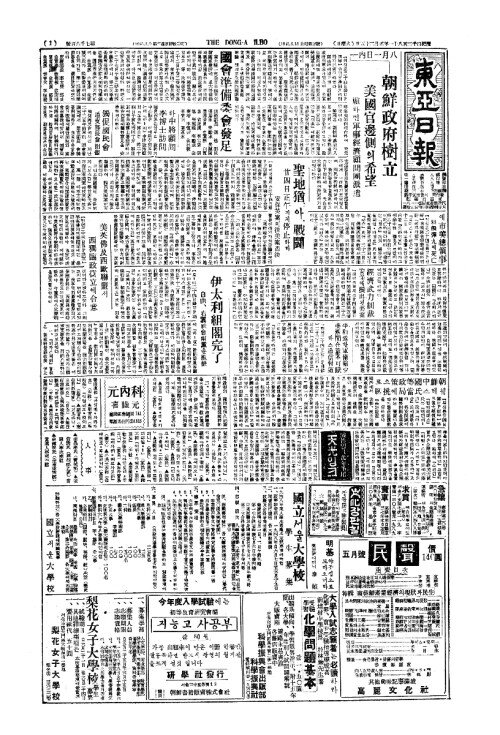 - 伊太利組閣完了(이태리조각완료) 自由(자유)、右翼社會兩黨(우익사회량당)을抱攝(포섭)