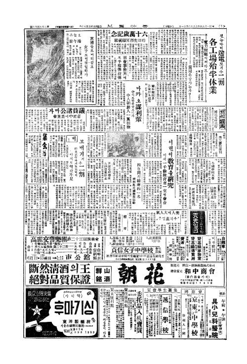 - 절늠바리送電(송전)도겨우二割(이할) 各工場殆半休業(각공장태반휴업)