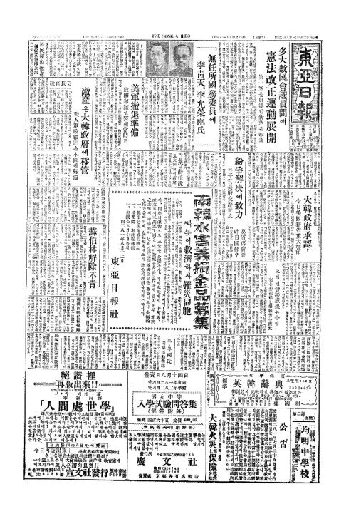 - 敵產(적산)은大韓政府(대한정부)에移管(이관) 美人軍政顧問(미인군정고문)은本國(본국)에歸還(귀환)