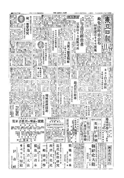 - 赦免法昨日公布(사면법작일공포) 國會認准(국회인준)을받어實施(실시)