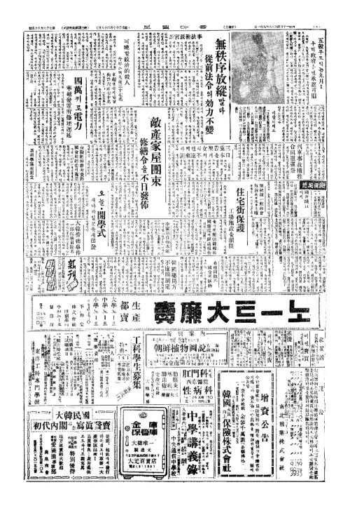 - 敵產家屋團束(적산가옥단속) 修繕令(수선령)을不日發佈(부일발포)