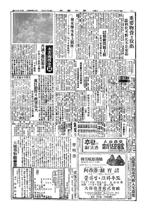 - 漢江沿岸(한강연안)의被害莫大(피해막대) 京釜線大邱以南(경부선대구이남)도遂不通(수부통)