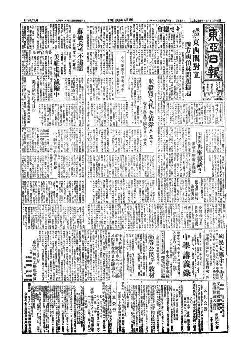 - 三合配給(삼합배급)토록 李大統領糧糓問題(리대통령량곡문제)에談話(담화)