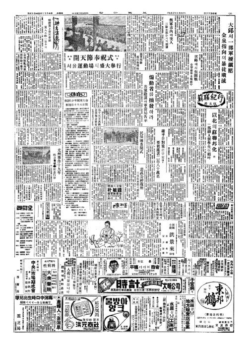 - 開天節奉祝式(개천절봉축식) 서울運動場(운동장)서盛大擧行(성대거행)