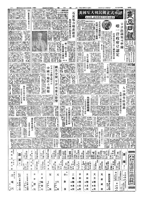 - 人口調査法通過(인구조사법통과) 英國(영국)의 對韓承認等報吿(대한승인등보고)
