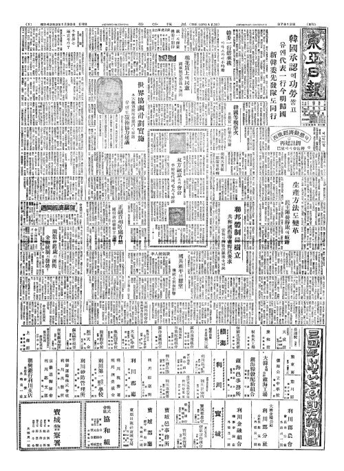 - 棉花買上(면화매상)에同意(동의) 國旗制定委員(국기제정위원)도選出(선출)