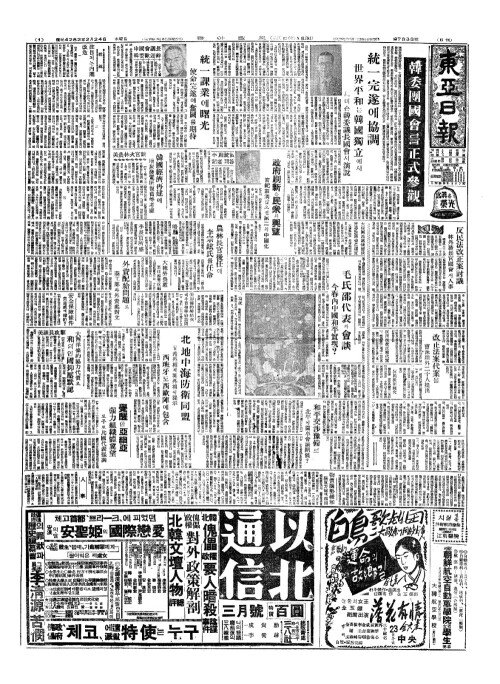 - 毛氏邵代表(모씨소대표)와會談(회담) 今春內中國和平實現(금춘내중국화평실현)?