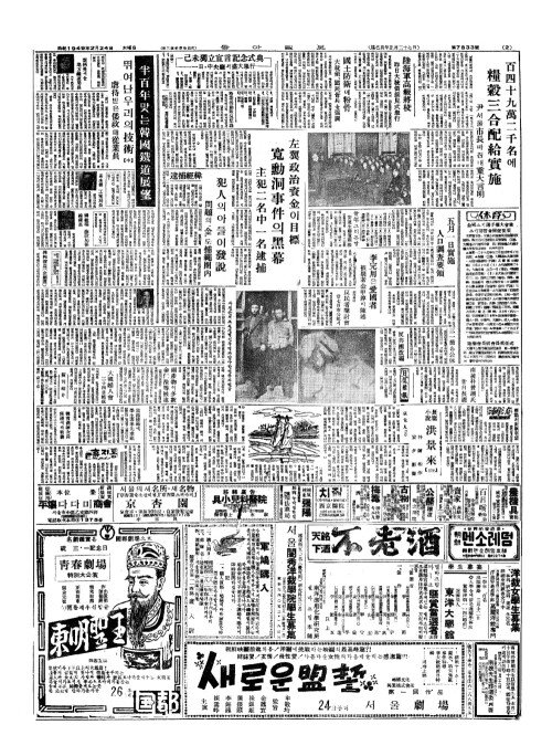 - 百四十九萬二千名(백사십구만이천명)에 糧糓三合配給實施(양곡삼합배급실시)