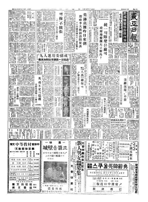 - 美議員團昨日來朝(미의원단작일내조) 即時李大統領訪問要談(즉시리대통영방문요담) 오늘申國會議長(신국회의장)과도會談豫定(회담예정)
