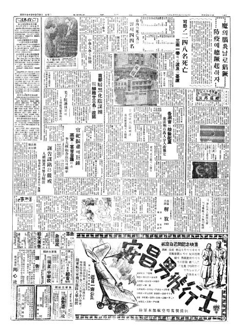 - 本社主催(본사주최) 學生水上競技大會(학생수상경기대회) 뇌염蔓延(만연)으로無期延期(무기연기)