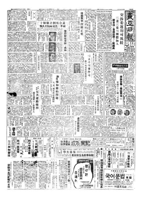 - 對日早速講和(대일조속강화) 美(미)휴버議員力說(의원역설)