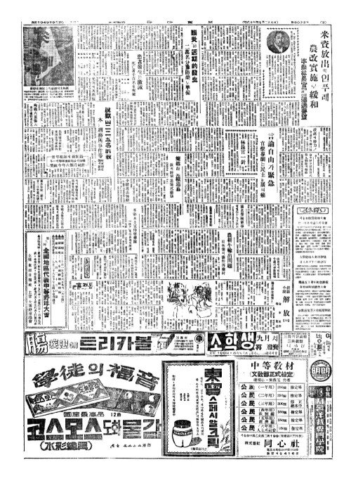 - 米資放出(미자방출)의인푸레 農改實施(농개실시)로緩和(완화) 李農林長官糧糓管理法通過要望(리농림장관량곡관리법통과요望)