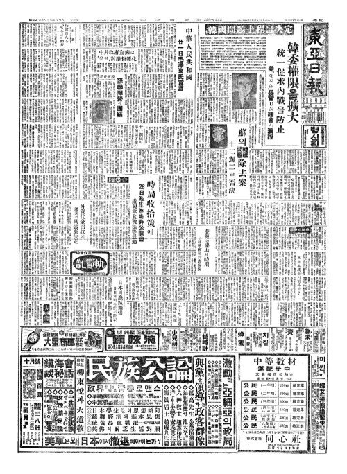 - 中華人民共和國(중화인민공화국) 廿一日毛澤東氏宣言(입일일모택동씨선언)