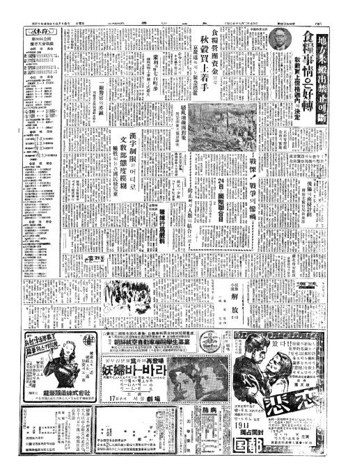 - 食糧事情(식량사정)은好轉(호전) 地方米搬出禁止(지방미반출금지)에斷(단)