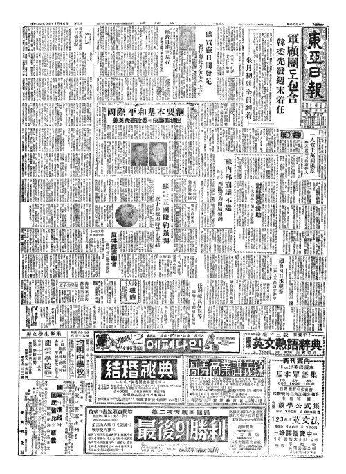 - 國際平和基本要綱(국제평화기본요강) 美英代表政委(미영대표정위)에決議案提出(결의안제출)