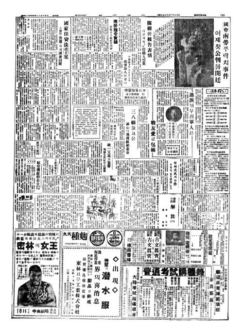- 國家保安法改正案(국가보안법개정안) 大統領決裁(대통영결재)·어제國會回附(국회회부)