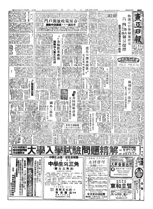 - 物議(물의)많던學制遂決定(학제수결정) 六(륙)·四(사)·四(사)·六二(륙이)·四制(사제)를採擇(채택)