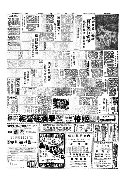 - 政府米放出繼續(정부미방출계속) 百(백)60萬石確保(만석확보)