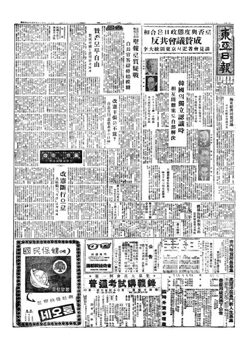 - 和合(화합)은日政態度與否(일정태탁여부)로 反共會議賛成(반공회의찬성) 李大統領東京(리대통영동경)서記者會見談(기자회현담)