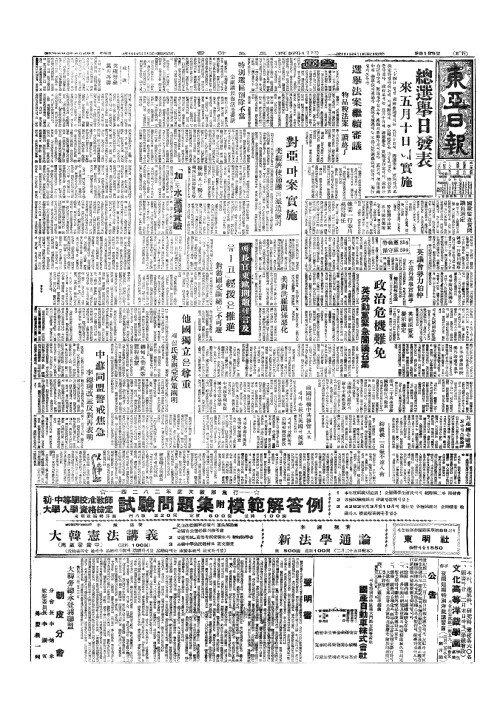 - 總選擧日發表(총선거일발표) 來五月十日(내오월십일)에實施(실시)