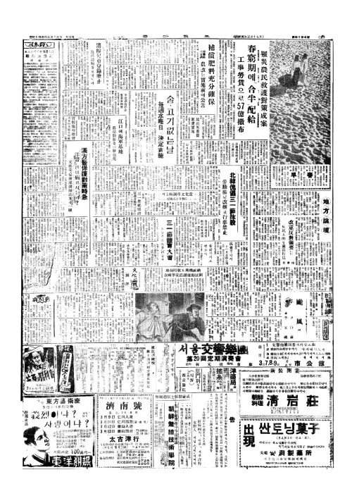 - 春窮期(춘궁기)에「合半配給(합반배급) 工事勞賃(공사로임)으로57億撒布(억살포)